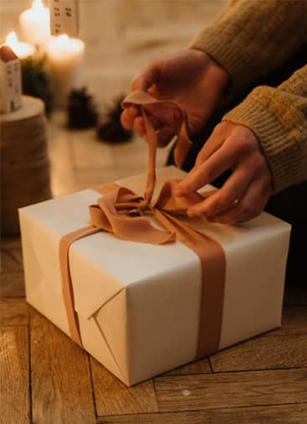 包装紙やリボンは、大切なお菓子を包み込むドレスのようなもの。