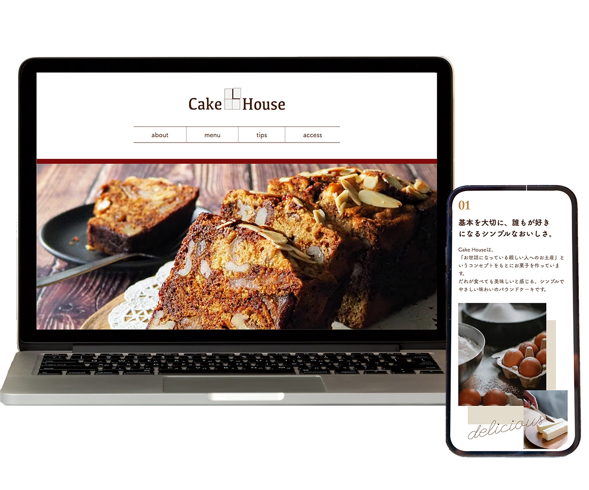 - 架空のパウンドケーキ専門店「Cake House」のwebサイトを作成しました。