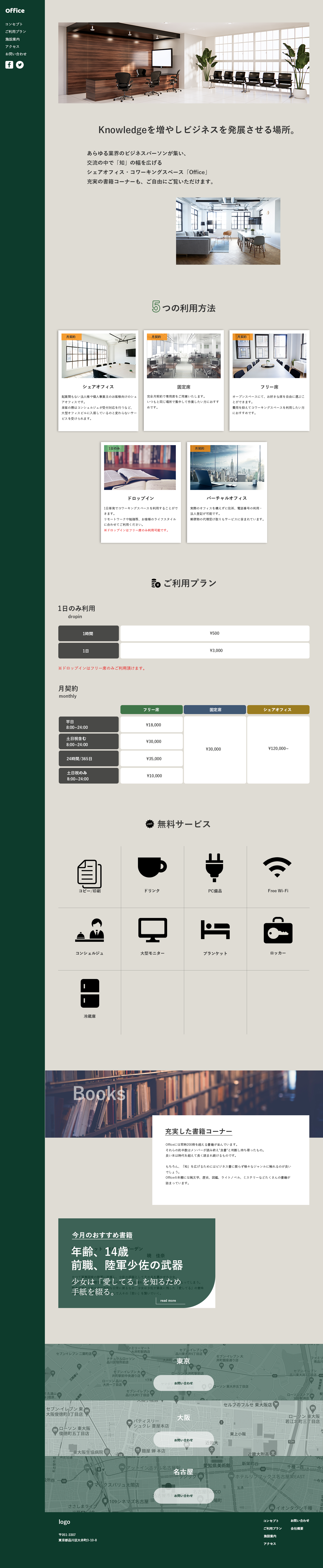 - 架空のシェアオフィス「office」のwebサイトデザインを作成しました。